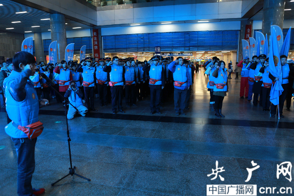 央廣網北京2月4日消息(記者徐婷)今日(4日)是春運首日,北京春運志愿者也全面上崗服務。下午,北京團市委、北京市志愿服務聯合會、北京西站地區管委會共同在北京西站舉行2015年北京市“暖冬行動”春運志愿服務啟動暨北京西站地區志愿服務隊成立儀式。來自北京公交、地鐵、鐵路、長途客運站以及西站地區的100余名志愿者代表參加活動。這標志著2015年北京春運志愿服務工作正式拉開帷幕。