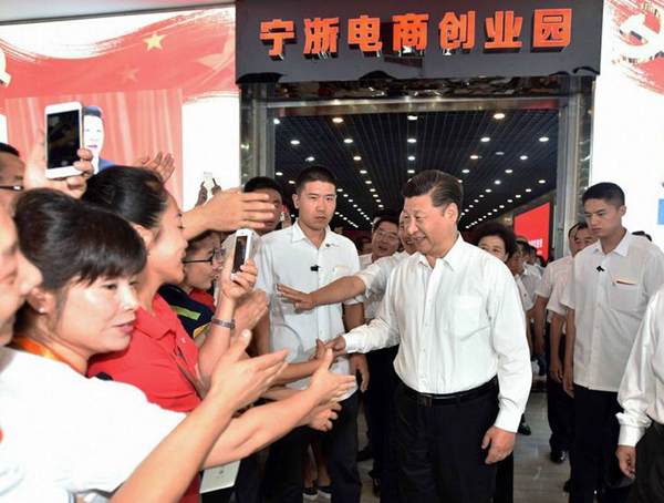 7月19日下午,習(xí)近平在銀川考察寧浙電商創(chuàng)業(yè)園。