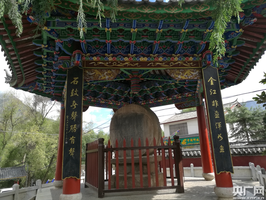 再往里走,是當(dāng)?shù)丶t軍搶渡金沙江前,賀龍揮鞭擊過的石鼓。當(dāng)年就是在這里,賀龍召開了渡江大會,并根據(jù)當(dāng)?shù)亓?xí)俗,用馬鞭奮力擊響了石鼓。