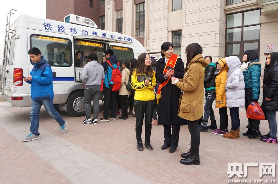 太原南站將鐵路移動售票車開進22所大專院校 讓學生少跑路、少受凍(央廣網記者 李楠 攝)