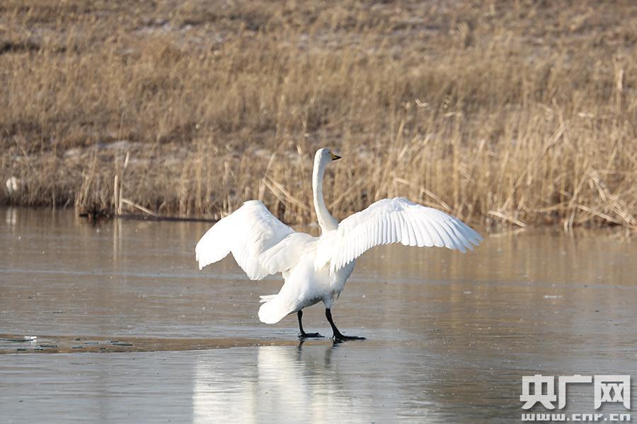 央廣網(wǎng)銀川2月26日消息(記者郭長江、許新霞、胡鈺、實習生張兆福)2月25日下午,據(jù)一張姓先生爆料,寧夏回族自治區(qū)首府銀川市到永寧縣快速公路中國治沙大學丁字路口往南500多米西側(cè)的景觀水道里,有一只受傷的天鵝在水中游弋。隨后,記者和張先生會合后,拍了幾張照片,本希望能捕住天鵝送往專業(yè)的救治中心進行救治。但是,幾經(jīng)努力,由于水面較寬,冰面較薄,加上天鵝來回在融化的冰河里不停地游動,實施的各種營救措施均告失敗。