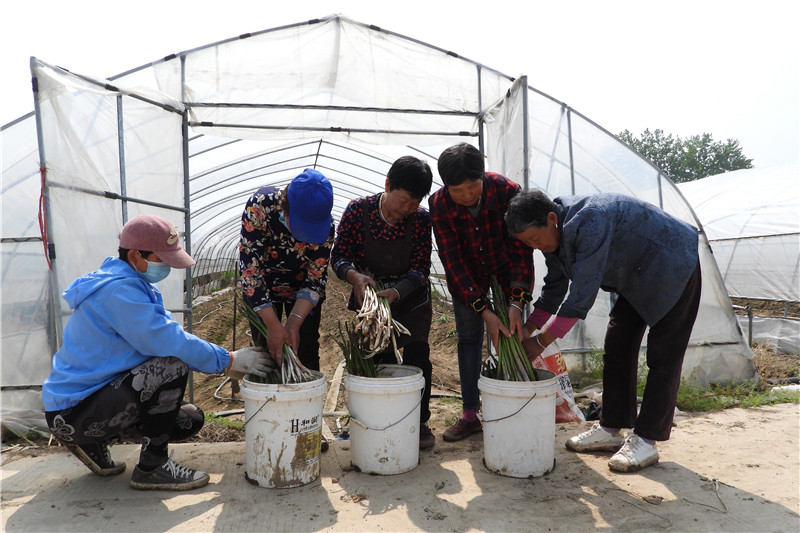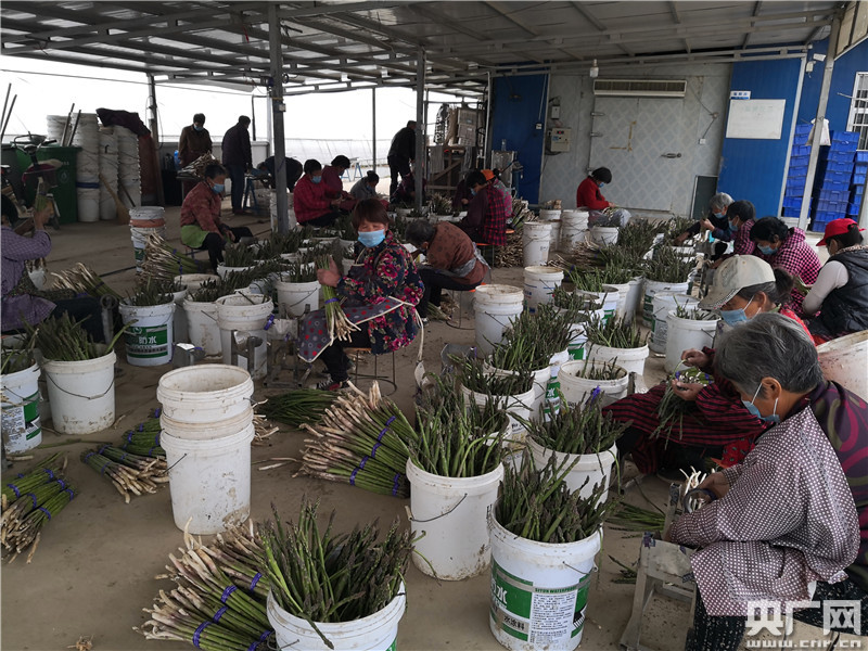 村民們早上的工作是在大棚里采摘蘆筍(央廣網發 潁上縣委宣傳部供圖)
