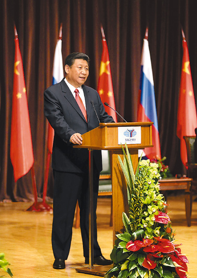 2013年3月,國家主席習近平在莫斯科國際關系學院發表演講。新華社記者 丁林攝