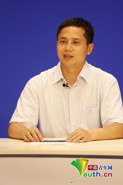 圖為全國學(xué)聯(lián)副秘書長、團(tuán)中央青年志愿者工作部副部長王明學(xué)在訪談現(xiàn)場。中國青年網(wǎng)記者 李延兵 攝