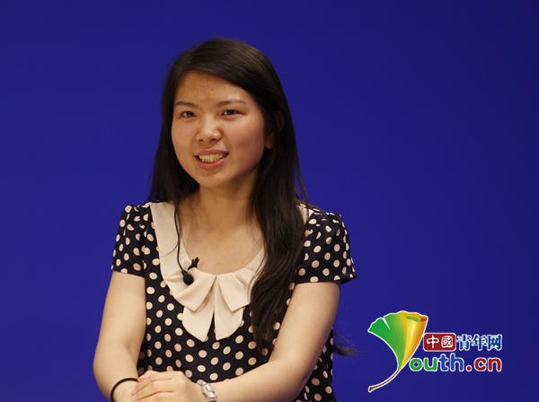 圖為西部計劃優(yōu)秀志愿者代表劉飛琳在訪談現(xiàn)場。中國青年網(wǎng)記者 李延兵 攝