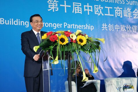 李克強總理29日在第十屆中歐工商峰會上說,中歐投資合作應面向?qū)嶓w經(jīng)濟,開展產(chǎn)能合作。圖片來自中國政府網(wǎng)