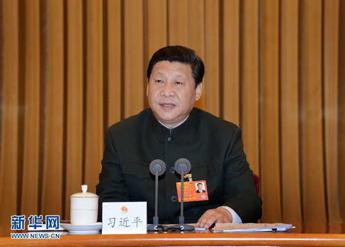 2013年3月11日,習近平出席十二屆全國人大一次會議解放軍代表團全體會議并發表重要講話。 新華社記者 李剛 攝