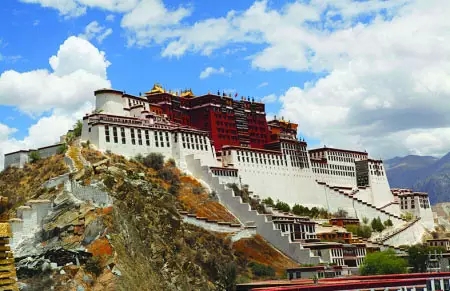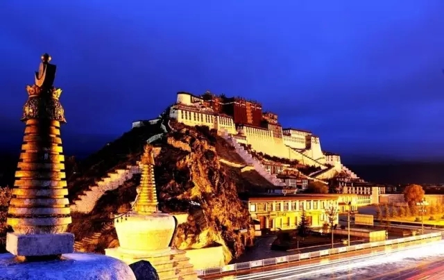 布達拉宮,海拔3700米,占地總面積36萬平方米,建筑總面積13萬平方米,主樓高117米,共13層,其中宮殿、靈塔殿、佛殿、經堂、僧舍、庭院等一應俱全,是一座宮堡式建筑群,最初是吐蕃王朝贊普松贊干布為迎娶尺尊公主和文成公主而興建。17世紀重建后,成為歷代達賴喇嘛的冬宮居所,為西藏政教合一的統治中心。