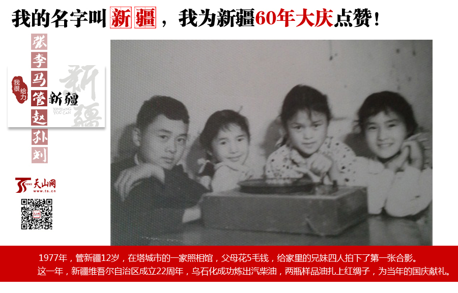 管新疆:提及我的名字,說來復雜,三次改名,最終確定管新疆這個名字。我出生那會兒,父親在塔城工作,就給我起名叫管新城,我猜測就是因為出生在新疆塔城,所以起名叫管新城,后來說這個名字跟老家一叔叔名字重字,得改,我就改名叫管保林,再后來,爺爺覺得這個名字不夠好,就又一次改名, 因父親工作在新疆,爺爺就給我起名叫管新疆了!