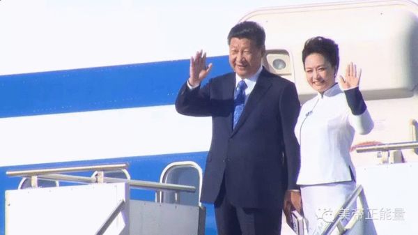 上午9點19分,習近平主席的飛機到達西雅圖北邊的佩恩機場。習主席與夫人彭麗媛走出機艙,向歡迎的人群揮手致意。