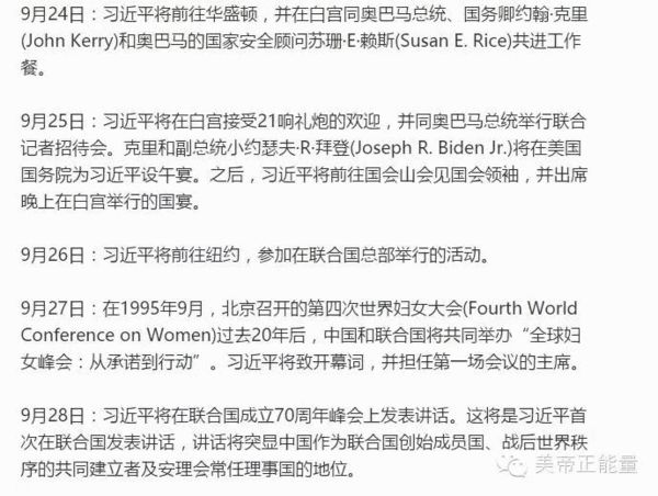 今晚,習近平將在美中關系全國委員會(National Committee on United States-China Relations)和美中貿易全國委員會(U.S.-China Business Council)舉辦的晚宴上,面向商界領導人物和包括前國務卿亨利·基辛格(Henry Kissinger)在內的其他貴賓,發表重要的政策演講。在此之前,他帶領6位中國省長與4位美國州長參加“中美省州長論壇”。