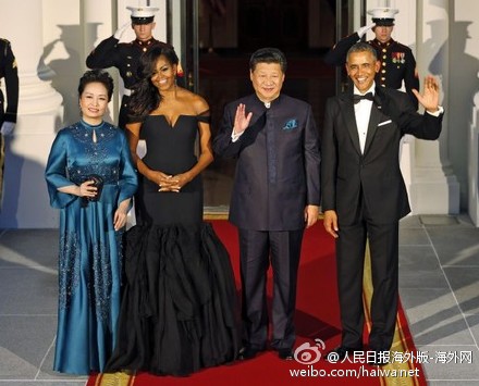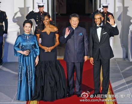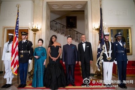 【奧巴馬在白宮東廳設(shè)國宴招待習(xí)近平夫婦】據(jù)美聯(lián)社報(bào)道,奧巴馬總統(tǒng)夫婦在9月25日晚邀請(qǐng)中國國家主席習(xí)近平及夫人彭麗媛參加在白宮東廳舉行的國宴,四人在東廳門口亮相。