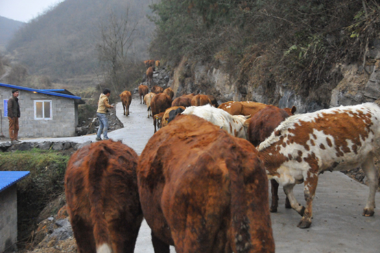 靠山吃山,勤勞致富。午后,滿是歡喜的張永常穿著滿是泥濘膠皮鞋,開始忙著放牛。一頭頭健壯的牛,爭先恐后地往山上跑,此起彼伏牛叫聲響徹山谷。
