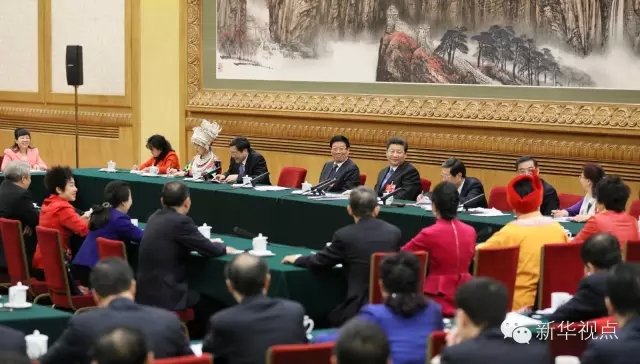 2016年3月4日,習近平看望參加全國政協十二屆四次會議的民建、工商聯委員,并參加聯組會,聽取委員們意見和建議。新華社記者蘭紅光攝