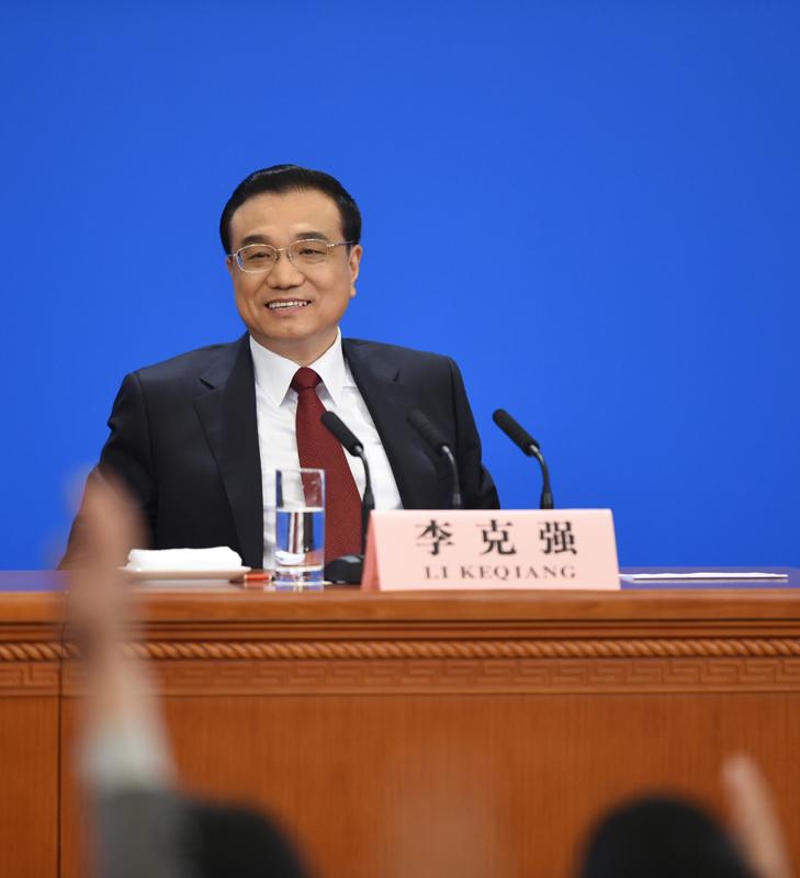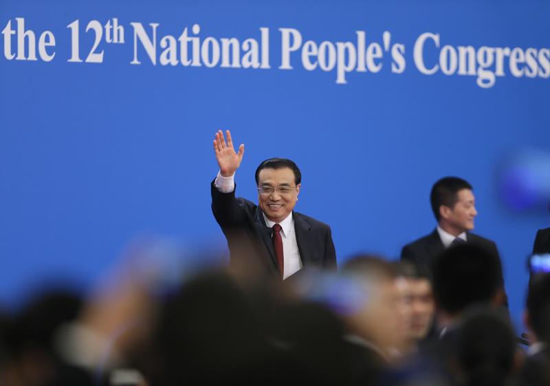3月16日上午,十二屆全國人大四次會議在人民大會堂舉行記者會,李克強總理在金色大廳會見中外記者并回答記者提問。