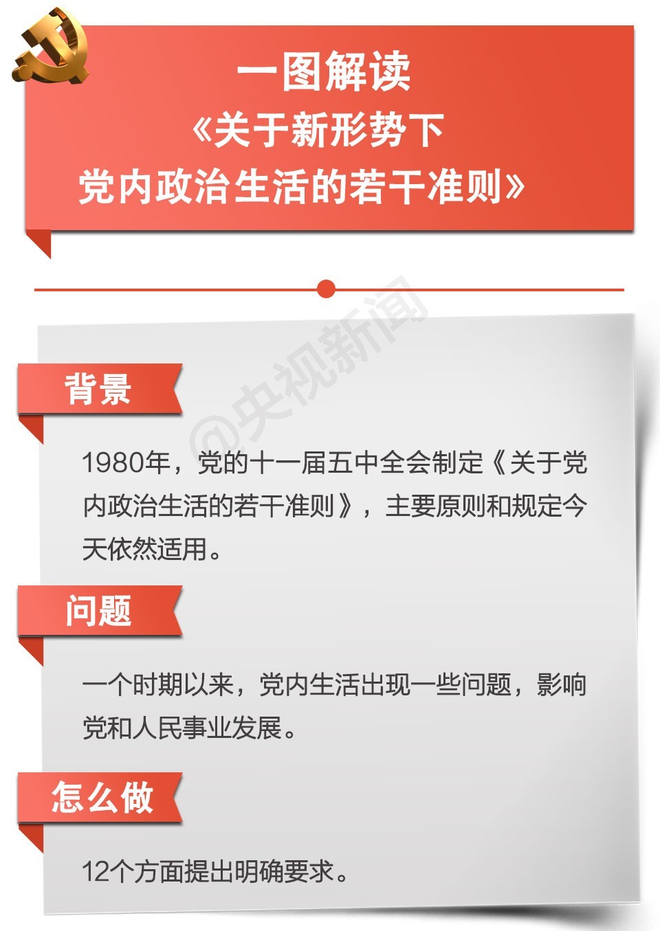 10月召開的十八屆六中全會上,最重要的成果之一,就是兩個文件即《關(guān)于新形勢下黨內(nèi)政治生活的若干準(zhǔn)則》和《中國共產(chǎn)黨黨內(nèi)監(jiān)督條例》的正式出臺。這兩個黨內(nèi)文件在全面從嚴(yán)治黨中具有里程碑意義。