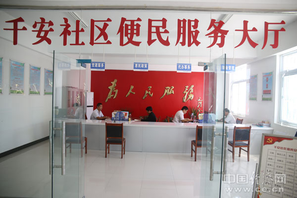 千安社區便民服務大廳就在衛生服務中心的對面。(經濟日報-中國經濟網記者鄧浩 攝)