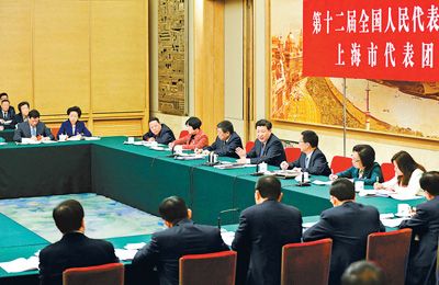 2016年3月5日,中共中央總書記、國家主席、中央軍委主席習(xí)近平參加十二屆全國人大四次會(huì)議上海代表團(tuán)的審議發(fā)表重要講話。新華社記者 鞠鵬攝 會(huì)議提出,從嚴(yán)治黨,關(guān)鍵是要抓住領(lǐng)導(dǎo)干部這個(gè)“關(guān)鍵少數(shù)”,從嚴(yán)管好各級領(lǐng)導(dǎo)干部。