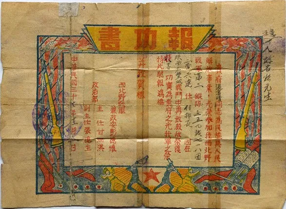 張富清當(dāng)年的報(bào)功書(3月30日翻拍)。新華社記者 程敏 攝