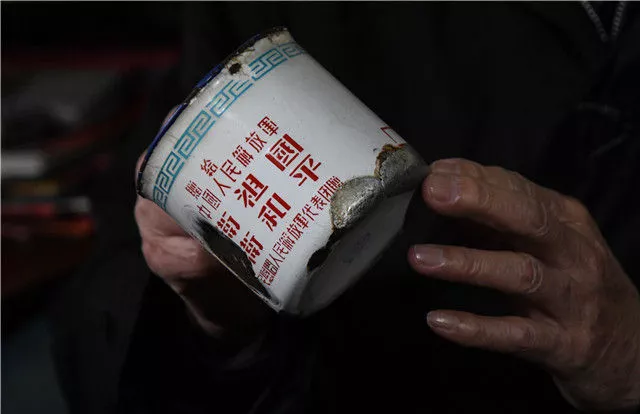 張富清珍藏了幾十年,補(bǔ)了又補(bǔ)的搪瓷缸(3月31日攝)。新華社記者 程敏 攝