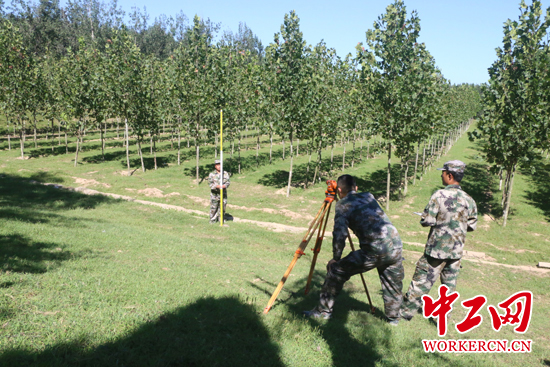 李濤和團(tuán)隊(duì)在進(jìn)行工程測(cè)量。中工網(wǎng)記者 朱晶晶 攝