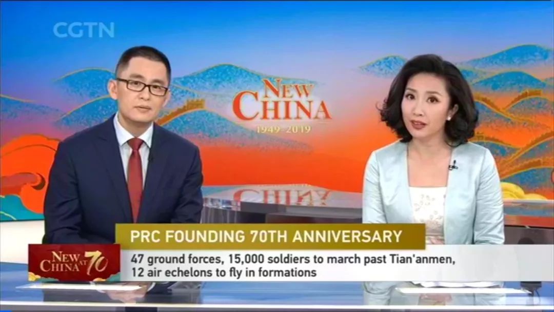 △CGTN英語頻道慶祝大會、閱兵、群眾游行主持人鄒悅和王茫茫