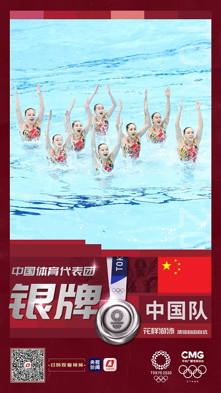 北京時(shí)間8月7日,在東京奧運(yùn)會(huì)花樣游泳集體自由自選決賽中,中國(guó)隊(duì)奪得銀牌。