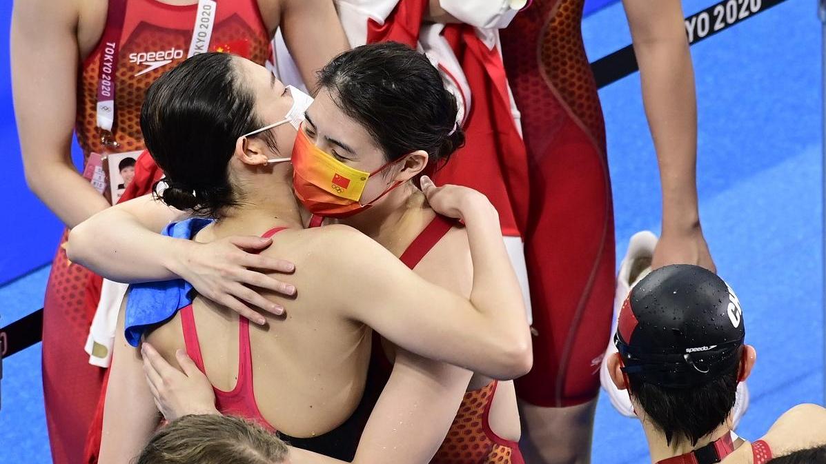 兩小時內連奪兩金的中國選手張雨霏并沒有著急離開泳池去慶祝。她一直在等日本選手池江璃花子,想給她一個擁抱,想送上自己的祝福。