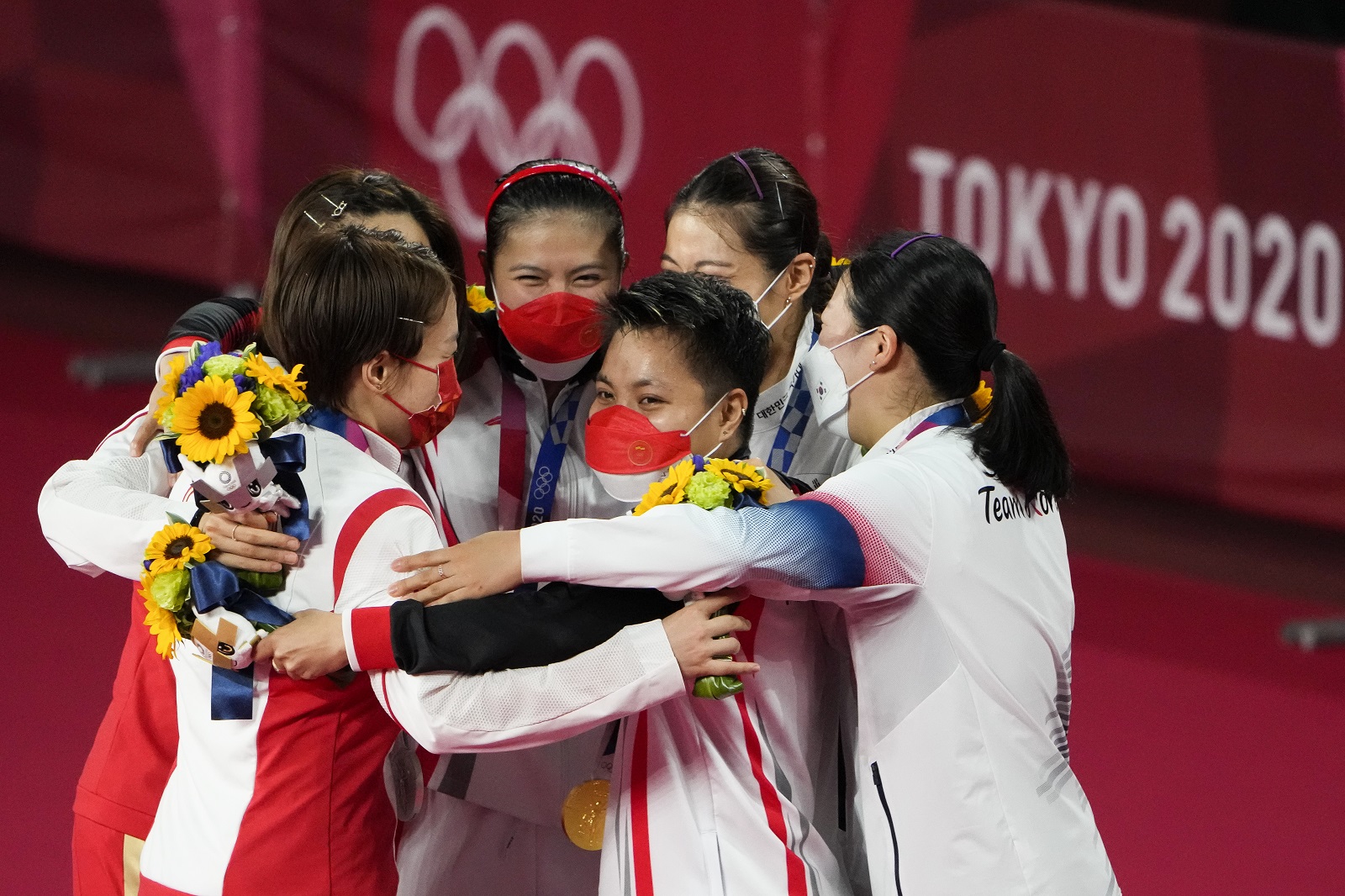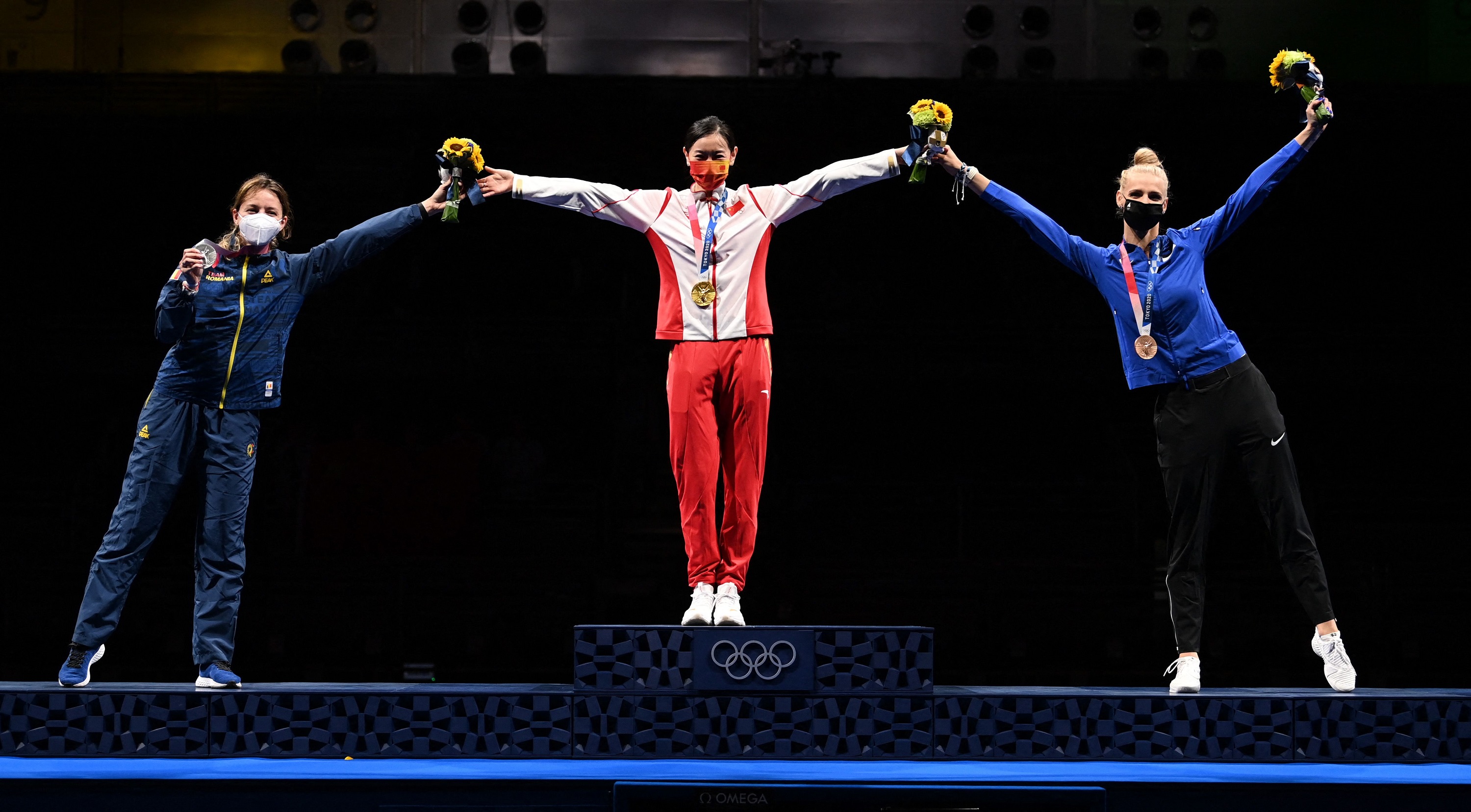 因保持社交距離的要求,讓本屆奧運會的運動員不能離得太近,但大家總有辦法讓彼此的心靠在一起。中國女子重劍選手孫一文,第一次站上奧運會最高領獎臺,很想和亞軍、季軍來張合影。