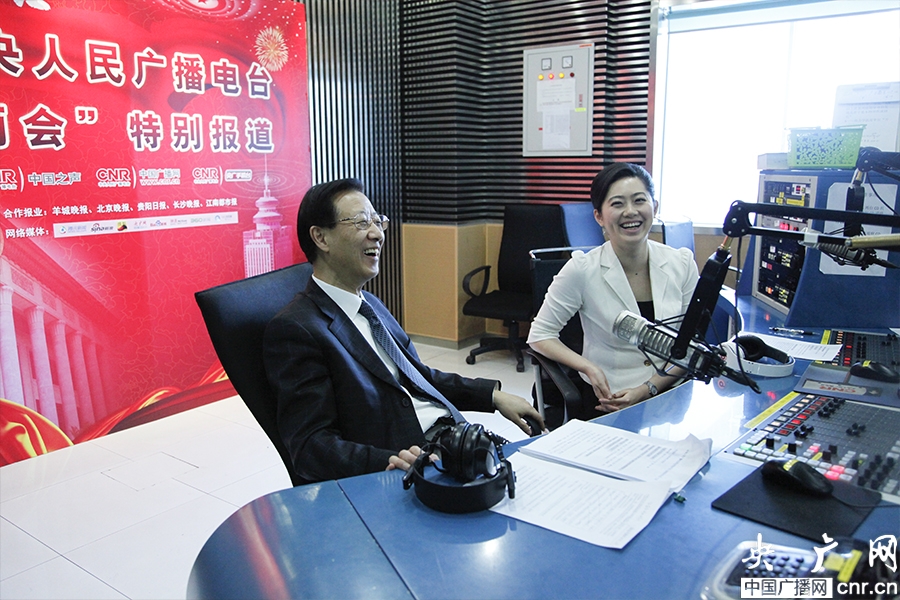 證監會副主席姜洋(左)做客中國之聲《做客中央臺》(央廣網記者 趙娜娜 攝)