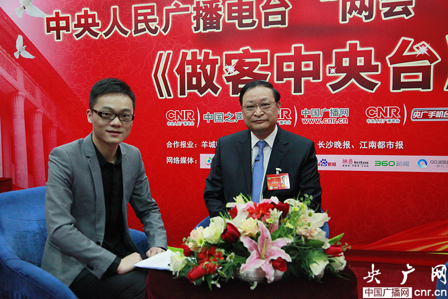 全國政協(xié)委員王國強與主持人胡凡 (央廣網(wǎng)記者 趙娜娜 攝)