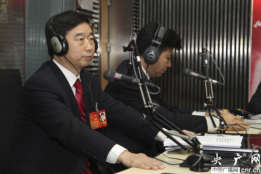 全國(guó)人大代表、河南省信陽(yáng)市市長(zhǎng)喬新江做客中國(guó)之聲《政務(wù)直通》(央廣網(wǎng)記者 趙娜娜 攝)