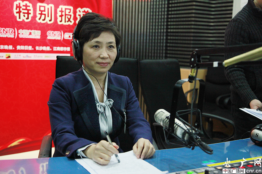 全國人大代表、河南濟源市市長王宇燕做客中國之聲《政務直通》(央廣網(wǎng)記者 趙娜娜 攝)