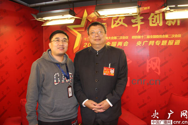 全國政協常委、民革中央常委、廣東省僑聯副主席李崴及央廣網副總裁王家耀(央廣網 穆天雨/攝)