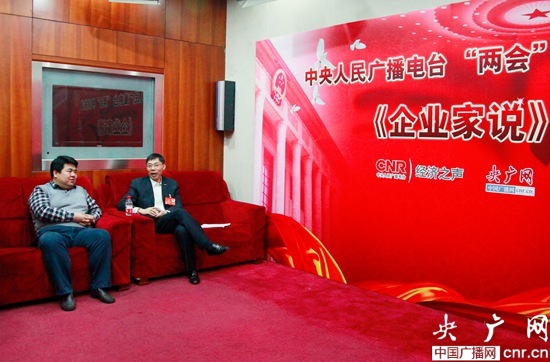 全國人大代表、浪潮集團董事長孫丕恕(右)在經濟之聲2014兩會高端訪談《企業家說》貴賓室。攝影 趙娜娜
