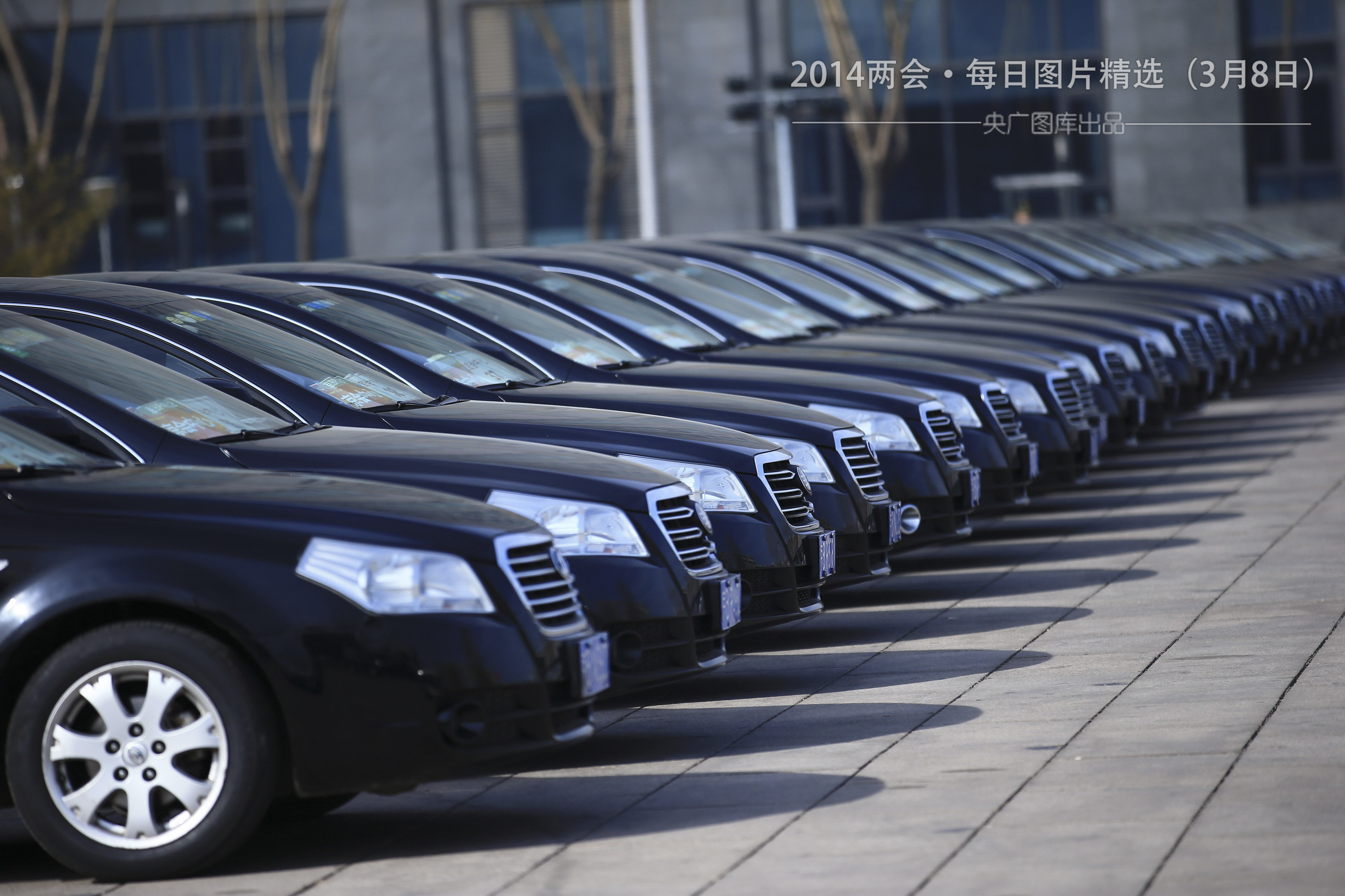 3月7日,停放整齊的兩會服務用車,整齊劃一有秩序。(圖片來源:CFP)
