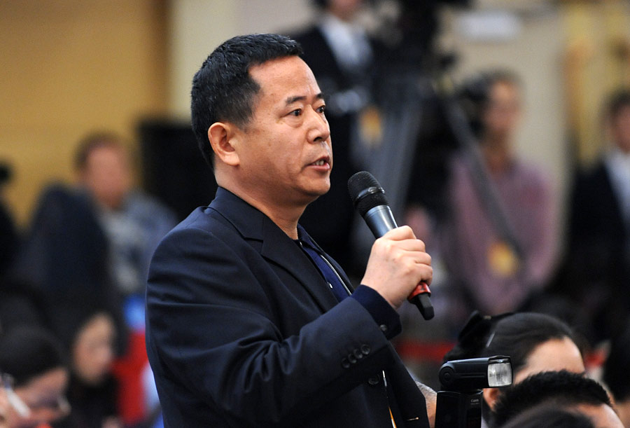 2014年3月6日上午9時(shí),十二屆全國(guó)人大二次會(huì)議新聞中心在梅地亞中心多功能廳舉行記者會(huì),邀請(qǐng)財(cái)政部部長(zhǎng)樓繼偉、副部長(zhǎng)張少春就“財(cái)稅體制改革和財(cái)政工作”的相關(guān)問題回答中外記者的提問。圖為中國(guó)財(cái)經(jīng)報(bào)記者提問。新華網(wǎng)/中國(guó)政府網(wǎng) 翟子赫攝
