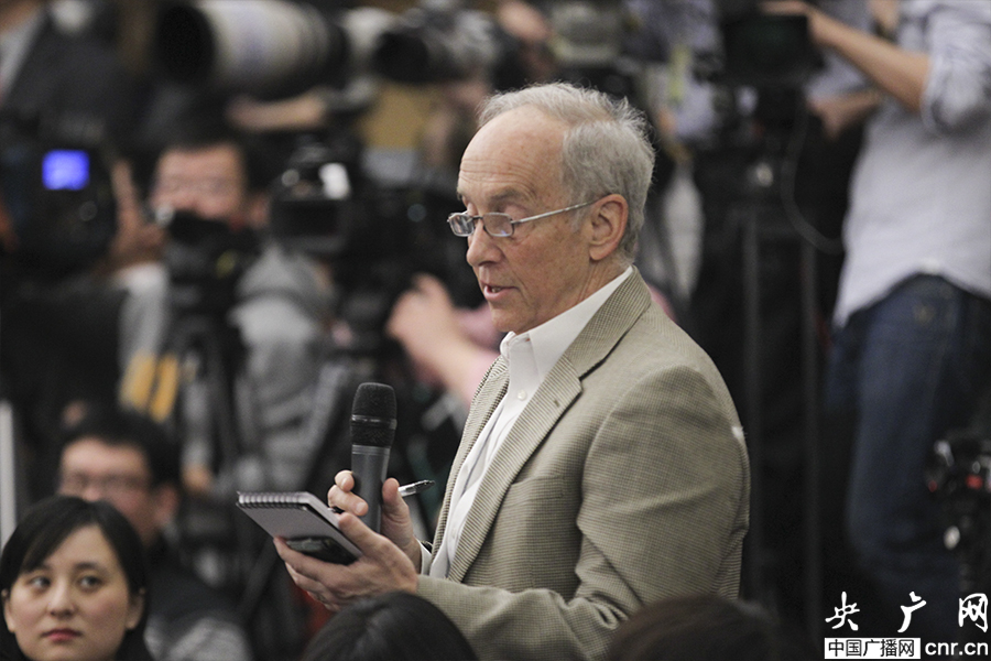 華爾街日報記者提問(央廣網記者 張曈 攝)