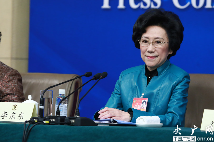 全國政協十二屆二次會議于2014年3月7日(星期五)上午10:30在梅地亞兩會新聞中心二層多功能廳舉行記者會,邀請全國政協委員卞晉平、劉佳義、賴明、李東東(女)等就“推進人民政協協商民主建設”的相關問題回答記者提問。圖為全國政協委員李東東出席記者會(央廣網記者涂傲攝)