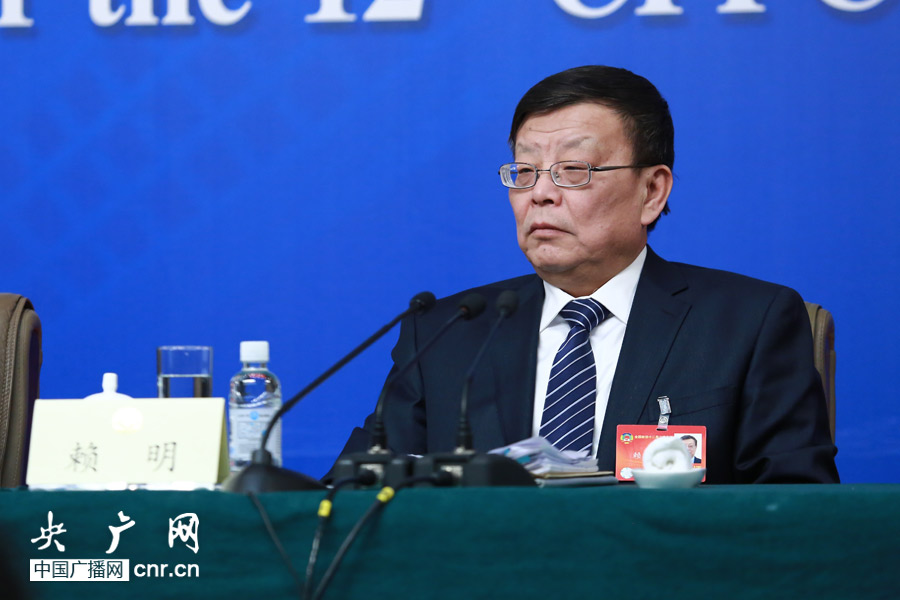 全國政協十二屆二次會議于2014年3月7日(星期五)上午10:30在梅地亞兩會新聞中心二層多功能廳舉行記者會,邀請全國政協委員卞晉平、劉佳義、賴明、李東東(女)等就“推進人民政協協商民主建設”的相關問題回答記者提問。圖為全國政協委員賴明出席記者會(央廣網記者涂傲攝)
