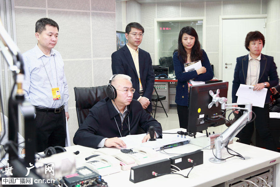 中央人民廣播電臺(tái)副總編輯劉曉龍現(xiàn)場指揮十二屆全國人大二次會(huì)議第二次全體會(huì)議直播工作