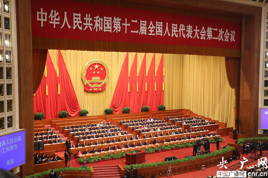 第十二屆全國人民代表大會第二次會議在人民大會堂舉行第三次全體會議(央廣網記者 涂傲 攝)