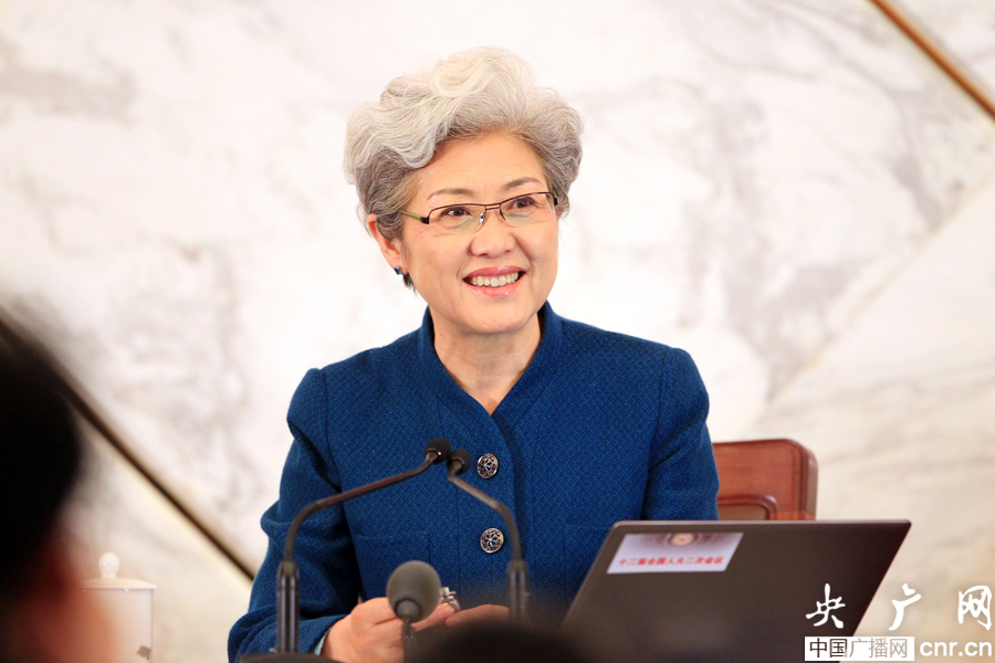 十二屆全國人大二次會議新聞發言人傅瑩(央廣網記者 張曈 攝)