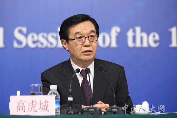 3月7日上午,十二屆全國人大二次會議在梅地亞中心舉行記者會,商務部部長高虎城就“商務發展與對外開放”的相關問題回答中外記者的提問。圖為商務部部長高虎城。羅榮 攝