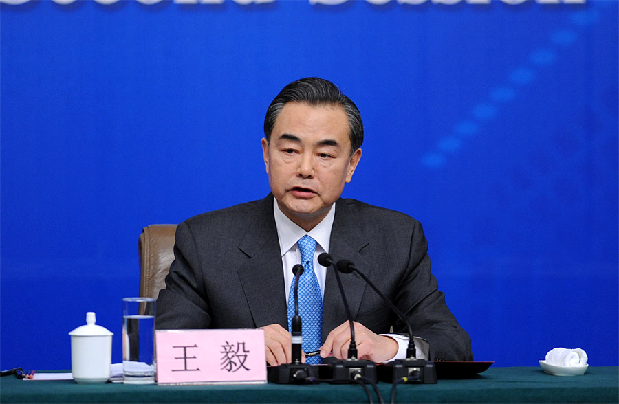 3月8日,十二屆全國人大二次會議舉行記者會,外交部部長王毅就“中國的外交政策和對外關系”答中外記者問。圖為王毅回答記者提問。新華網/中國政府網 陳競超 攝