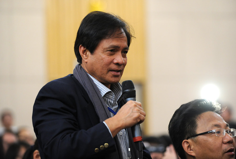 2014年3月8日上午10時,十二屆全國人大二次會議在梅地亞多功能廳舉行記者會,外交部部長王毅就“中國的外交政策和對外關(guān)系”的相關(guān)問題回答中外記者的提問。圖為美國全國廣播公司記者提問。新華網(wǎng)/中國政府網(wǎng) 翟子赫 攝