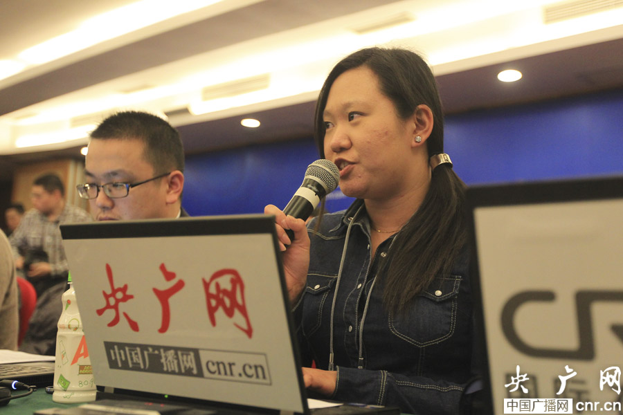 央廣網記者時晨進行提問(央廣網記者 張曈 攝)
