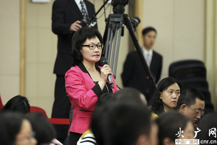 縣域經濟報記者提問(央廣網記者 張曈 攝)