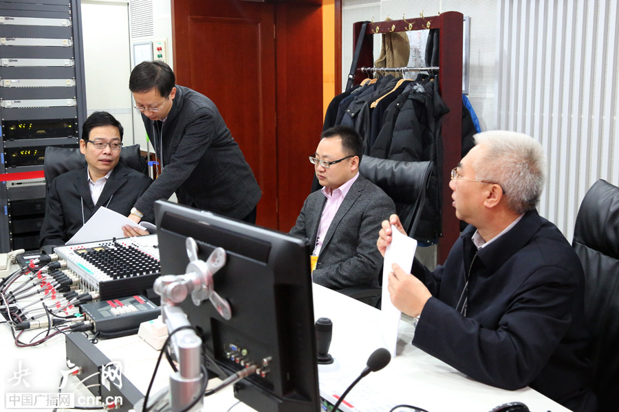中央人民廣播電臺(tái)總工程師錢(qián)岳林、副總編輯劉曉龍現(xiàn)場(chǎng)指揮中央臺(tái)全國(guó)政協(xié)十二屆二次會(huì)議閉幕會(huì)直播工作