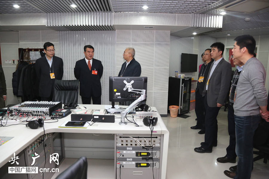 中央人民廣播電臺王求臺長到中央臺人民大會堂直播間看望工作人員、指導直播工作